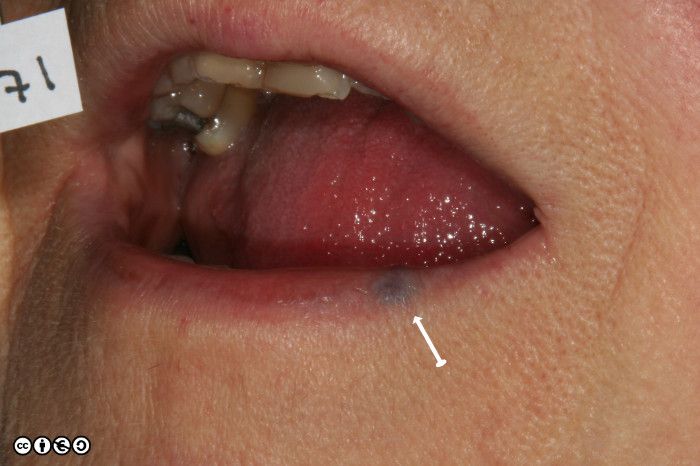 One variety referred to as a venous lake, is commonly seen on the lips, is easily compressible and is often confused with melanotic macules of the lips which are not compressible (discussed in the previous chapter).